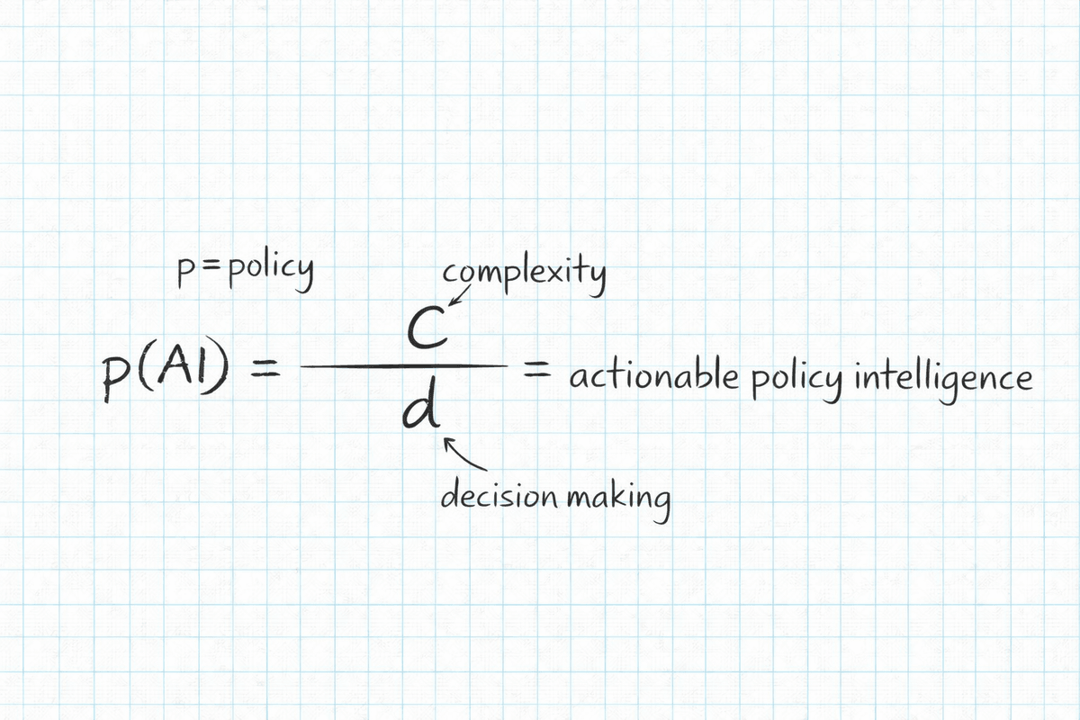 p(AI) is inspired by its mathematical analogue. As the data, stakeholders, and dynamics shaping public policy multiply, the decision field expands — but the relationship between context, judgment, and action must remain stable. p(AI) preserves that balance by structuring inputs, generating insight, testing alternatives, and surfacing trade-offs — enabling policy leaders to operate in complex environments with discipline, clarity, and confidence.